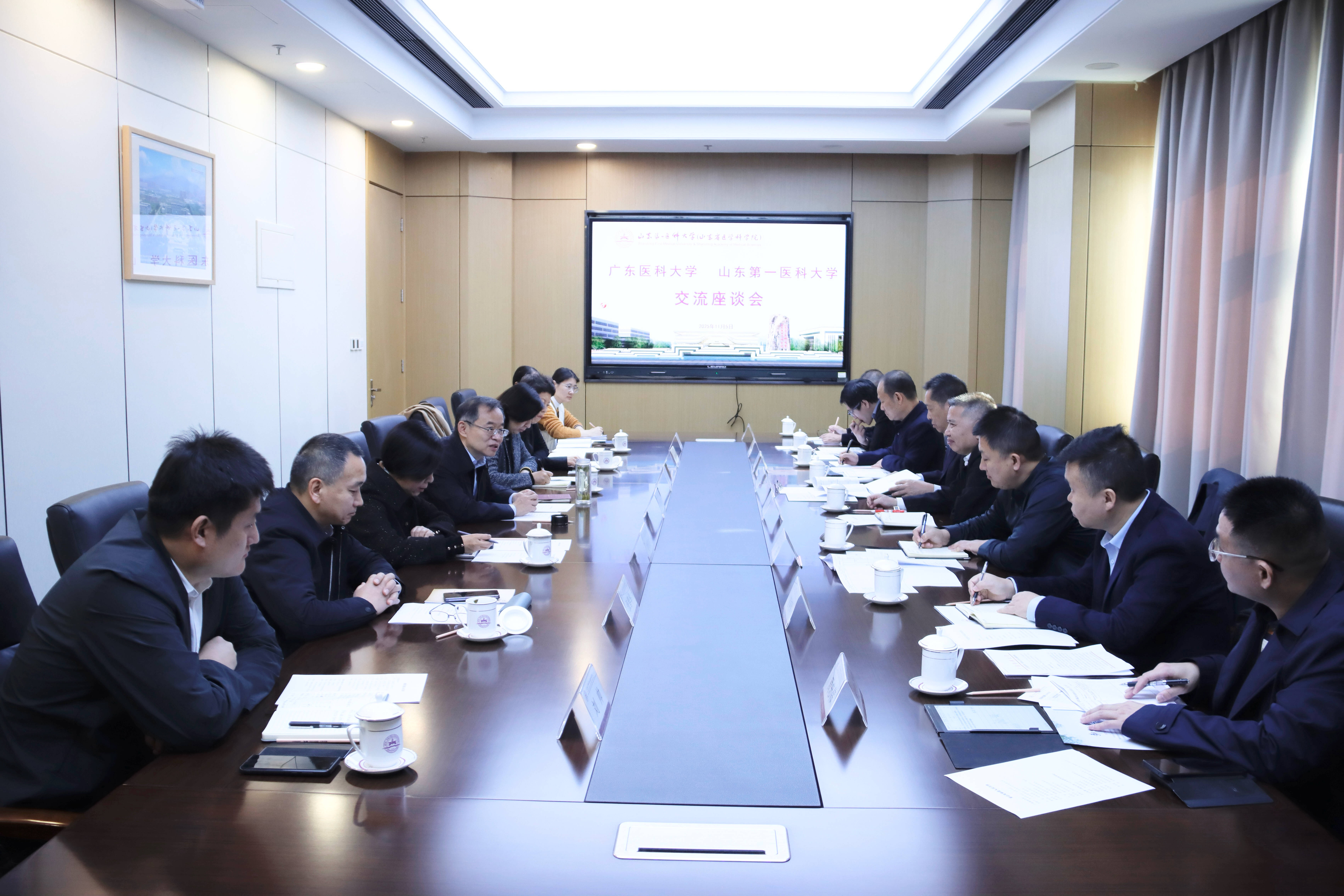 王宇轩对广东医科大学一行到访表示欢迎,并从历史沿革、发展战略、办学特色等方面介绍了校(院)的基本情况。他指出,山东第一医科大学与广东医科大学同为省属医科院校,承载着服务区域卫生健康事业发展的重任,希望两校以此次交流为契机,加强沟通,互学互鉴,共同探索高质量发展新路径。