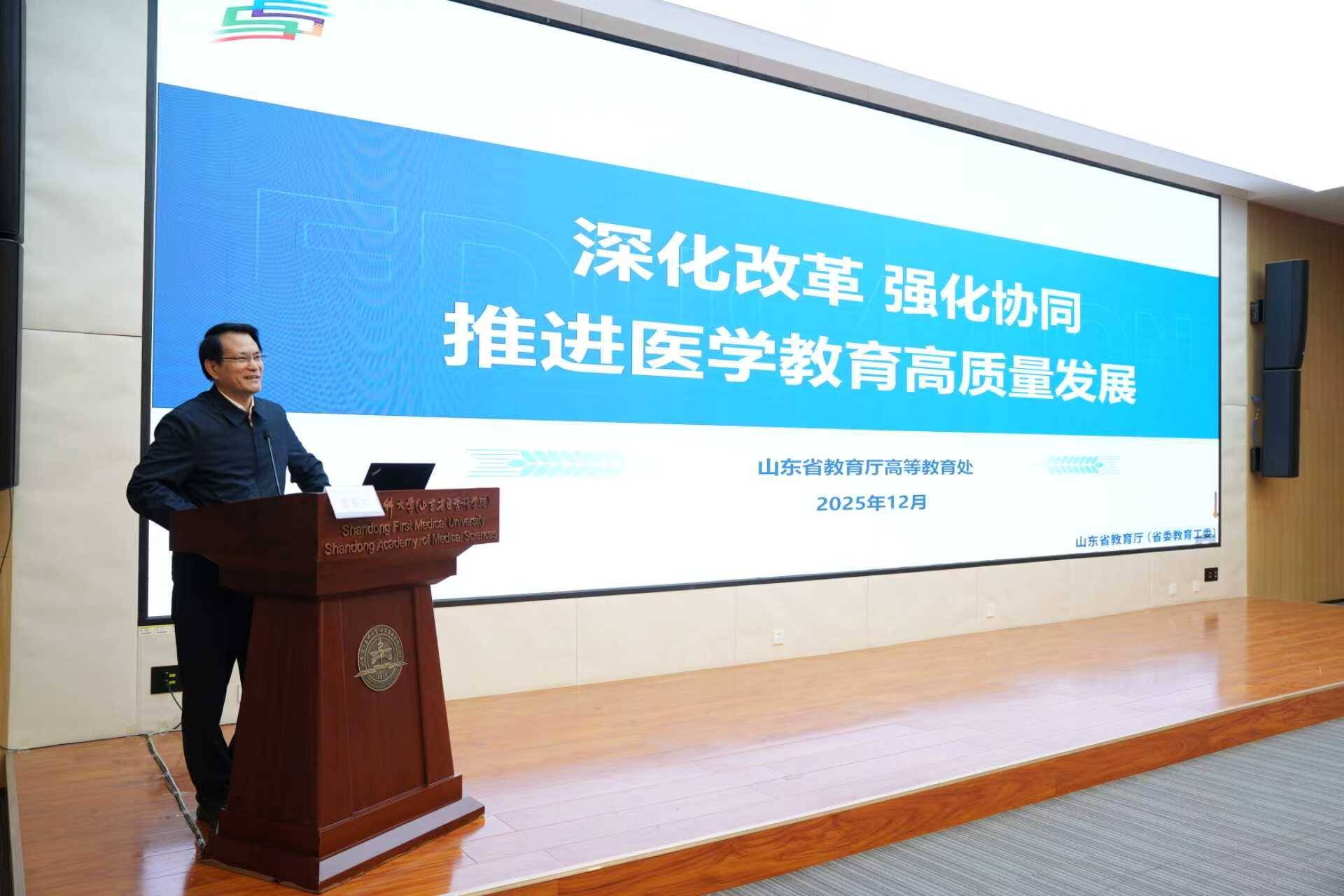 会议期间,曾宪文做了《深化改革、强化协同,推进医学教育高质量发展医教协同行动方案》报告。他指出,推进医学教育高质量发展是服务“健康中国”与“教育强国”两大国家战略的核心举措。山东省医学教育未来的改革方向,将以“医教协同”为路径,以需求为导向优化人才培养结构,聚焦提升专业学历层次、加强全科医学和公共卫生等紧缺人才培养、健全从院校到毕业后的全链条培养体系等重点任务,为“健康中国”战略贡献齐鲁智慧和山东方案。