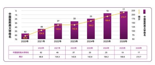 图2 校(院)2020-2026年度排名得分情况和中国医药类大学排名